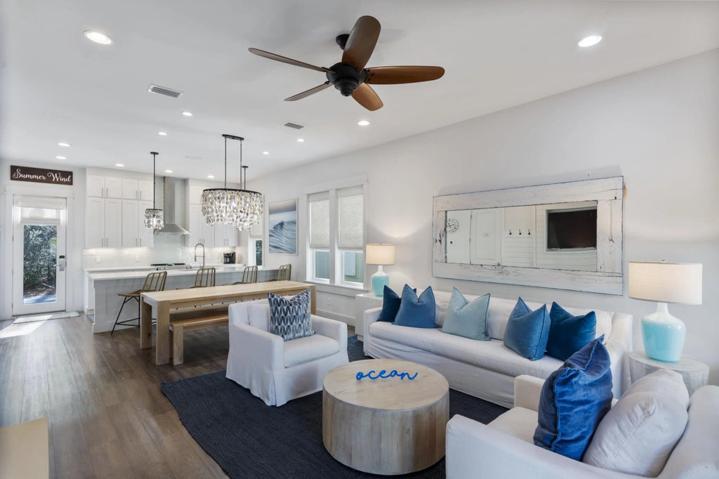 Welcome to 149 Redbud Lane, a 3-story beach cottage in the Treetop community of Inlet Beach. 'Summer Wind' is sold fully-furnished and is ready for immediate enjoyment! Conveniently located between Alys and Rosemary Beach, this home includes access to a pool oasis and exclusive deeded beach access. Entry points are easily accessible from both 30A and 98. As you enter Summer Wind, you are greeted by a lovely sitting area that flows into a well appointed kitchen. Featuring a spacious island with seating for four, a charming dining table and an oversized bench, seating for eight. The second floor features a king primary suite with a queen bed nook, perfect for multiple generations. In addition on this level is another king primary suite with ensuite bath. The third floor is ideally appointed for additional guests, with a spacious bunk room equipped with two twin-over-queen bunk beds and a private bath featuring a stand-alone shower. The fourth guest suite accommodates with three twin-over-twin bunk beds and its own bathroom, including a tub-shower combo. This level also offers a cozy sitting area with a plush sectional and Smart TV, perfect for movie nights. Treetop at Seacrest Beach is truly a hidden gem, offering the best of both worlds....a peaceful wooded retreat while being in the heart of vibrant beach life. You are steps to the community pool, a 170' oasis, and an outdoor shower offer a refreshing retreat within the comfort of your enclave. Featuring a gas hookup for grilling, and parking for three vehicles and a golf cart; every detail has been considered for enjoying the Florida lifestyle to the fullest. This property presents an exceptional investment opportunity with current projections estimated at $60 ~ $70K. This home is ready to welcome new owners! Schedule your showing today!